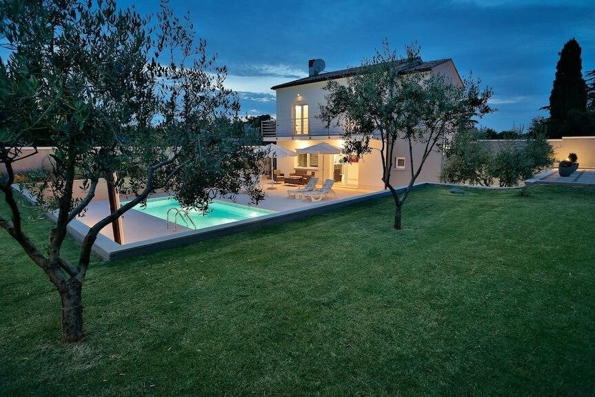 Cette charmante et spacieuse villa à Štinjan ravira tout le monde. Il y a un immense terrain de 1800 m2 entourant la villa avec une piscine privée et des chaises longues, clôturé par une haie et bien entretenu pour les plantes, pour une intimité totale.